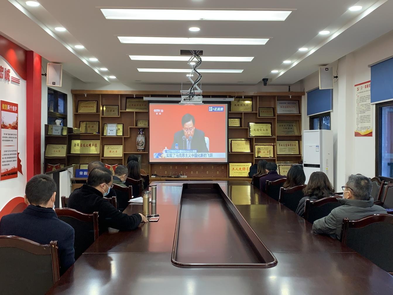 11月12日上午十點(diǎn),榮縣水司組織黨員干部職工共16人在公司會(huì)議室集中收看了黨的十九屆六中全會(huì)精神新聞發(fā)布會(huì)。