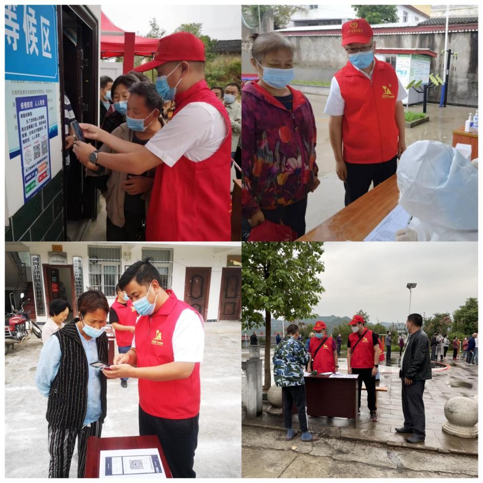 隨著人流量不斷增加,隊(duì)員們又主動(dòng)承擔(dān)起維持秩序、引導(dǎo)掃碼測(cè)溫等工作。“請(qǐng)您帶好口罩,出示行程碼,掃場(chǎng)所碼!”由于農(nóng)村地區(qū)老年人居多,對(duì)核酸檢測(cè)程序不了解,隊(duì)員們不厭其煩地一遍又一遍地重復(fù)著引導(dǎo)語(yǔ)。有的老年人沒(méi)有智能手機(jī)或者不會(huì)使用,他們又主動(dòng)幫助其核實(shí)身份信息、綁定“天府健康通”APP等等,讓采樣過(guò)程更加流暢,效率大大提高。經(jīng)過(guò)一天的努力,涂山鎮(zhèn)全域全員核酸采樣完成,無(wú)一人漏檢。