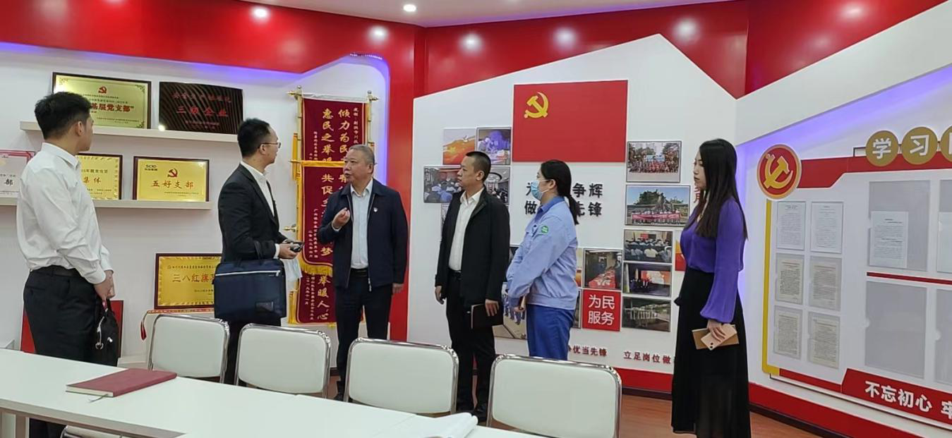 2022年10月20日上午,為認(rèn)真落實(shí)新時(shí)代黨的建設(shè)總要求,堅(jiān)持服務(wù)生產(chǎn)經(jīng)營不偏離,促進(jìn)黨建和生產(chǎn)經(jīng)營深度融合,積極推廣黨建特色品牌創(chuàng)建,充分發(fā)揮基層黨組織戰(zhàn)斗堡壘和黨員先鋒模范作用,讓黨旗在一線高高飄揚(yáng)。四川生態(tài)環(huán)保集團(tuán)黨建部副部長陳元隆一行檢查組就射洪水司黨支部基層黨建特色品牌“五星小水滴”創(chuàng)建情況進(jìn)行專項(xiàng)檢查,川投水務(wù)集團(tuán)黨群紀(jì)檢工作部部長李至彬,射洪水司紀(jì)檢委員、副總經(jīng)理杜剛陪同檢查。