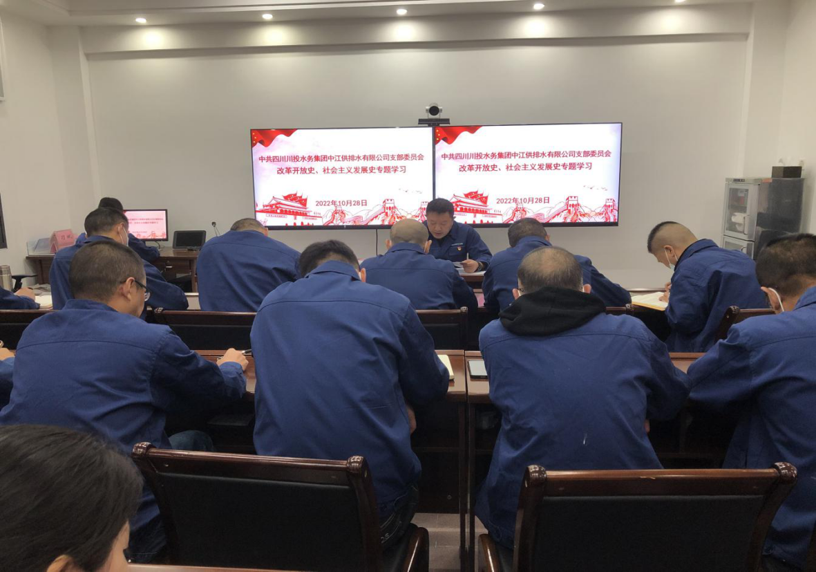 10月28日下午,中江水司黨支部組織召開黨員大會,專題學(xué)習(xí)“改革開放史、社會主義發(fā)展史”,會議由黨支部書記、董事長、總經(jīng)理朱禹主持,支部黨員、入黨積極分子、公司班組以上管理人員共計(jì)31人參加了學(xué)習(xí)活動(dòng)。