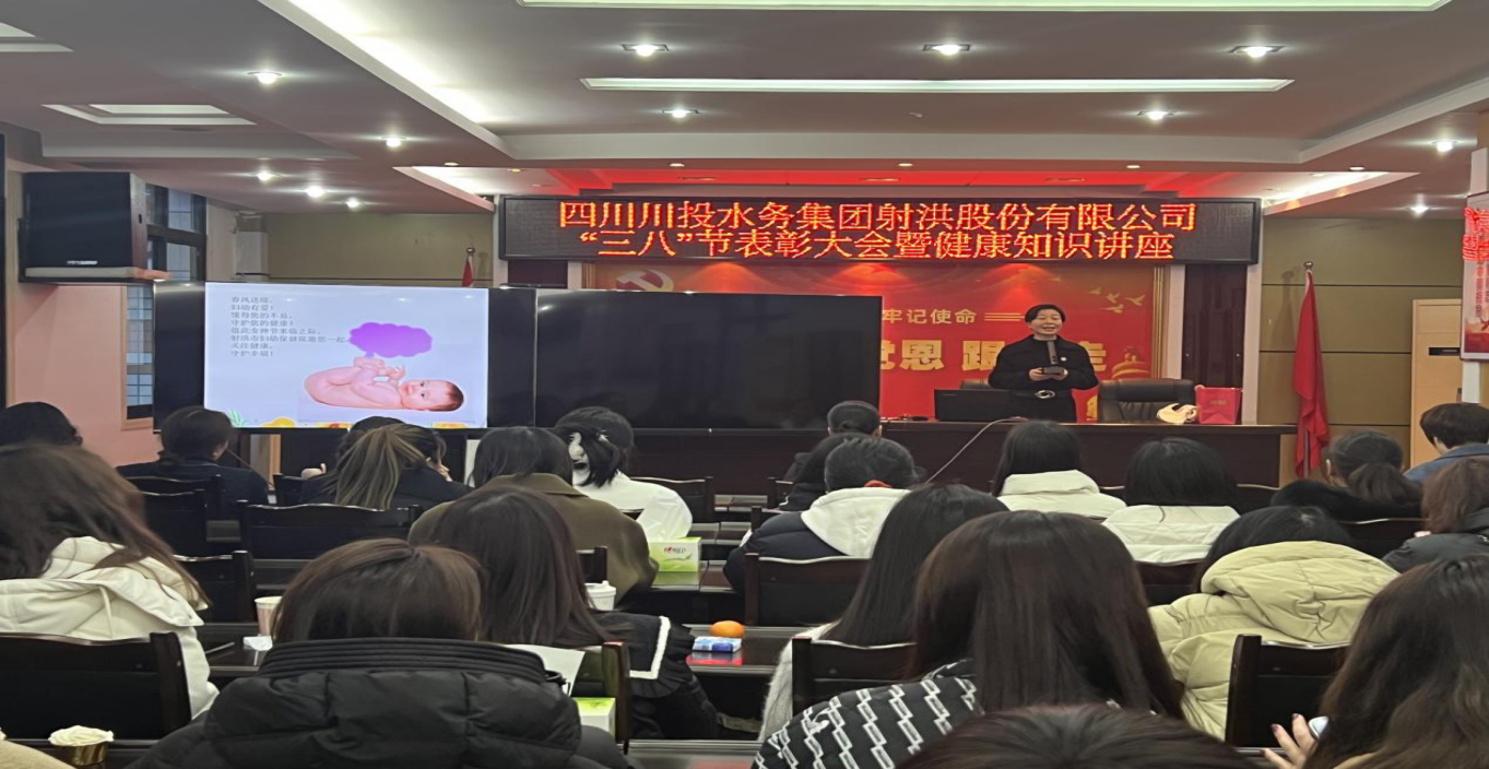 為慶祝第114個(gè)“三八”國(guó)際勞動(dòng)?jì)D女節(jié),團(tuán)結(jié)公司全體女職工勇立潮頭、砥礪奮進(jìn),3月8日,川投水務(wù)射洪公司召開(kāi)“三八”節(jié)表彰大會(huì)暨健康知識(shí)講座。