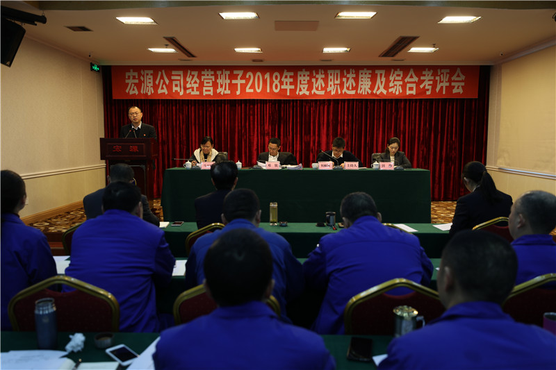2019年2月1日上午8:30,在春節(jié)即將來臨之際,川投水務集團黨委副書記、總經(jīng)理鄧銳率綜合部經(jīng)理侯獻國、安全環(huán)保部經(jīng)理馬玉斌、紀檢監(jiān)察部主任田靜一行到宏源公司進行2018年度綜合考評。宏源公司班子成員、中層管理人員、中心組學員70余人參加考評,23名青年員工列席會議。