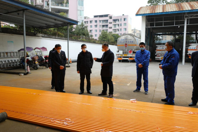 在客戶服務(wù)中心,鄧總首先看望慰問(wèn)了堅(jiān)守崗位的一線工作人員,現(xiàn)場(chǎng)了解了客戶服務(wù)中心值班、用戶繳費(fèi)、疫情檢查登記臺(tái)賬等情況。在宏源大酒店,鄧總詳細(xì)了解了宏源公司防護(hù)用品儲(chǔ)備、入住酒店客人、疫情期間對(duì)酒店同期營(yíng)業(yè)收入影響等情況,查看了酒店公共區(qū)域衛(wèi)生防疫登記臺(tái)賬。在CNG加油加氣站,鄧總了解了疫情期間加油加氣現(xiàn)場(chǎng)疫情防控工作、加油加氣生產(chǎn)經(jīng)營(yíng)等情況。來(lái)到安裝公司加工廠,鄧總現(xiàn)場(chǎng)察看了安裝公司復(fù)產(chǎn)復(fù)工前的準(zhǔn)備工作。
