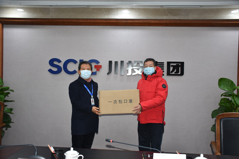 會(huì)后,李總代表川投集團(tuán)將2000只一次性口罩交到梁董事長(zhǎng)手中。