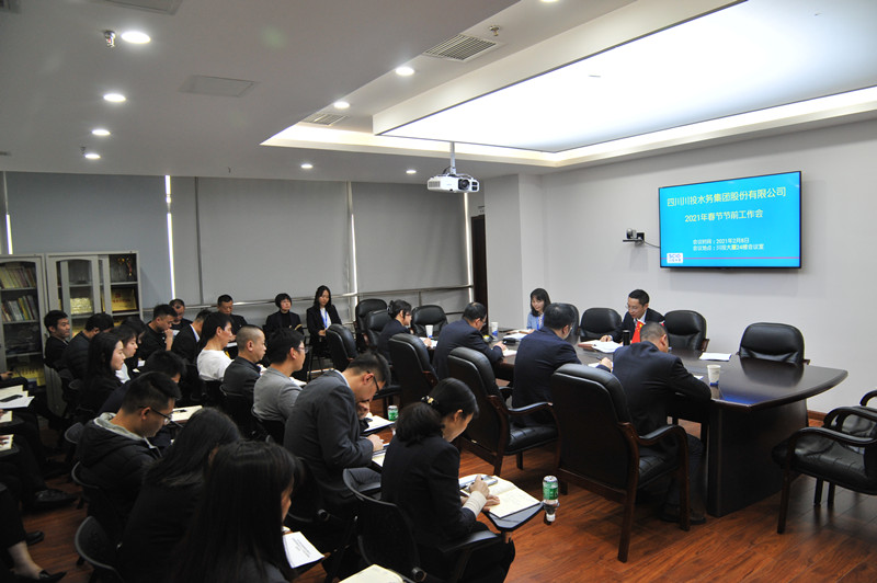 2021年2月8日,在新春佳節(jié)即將到來(lái)之際,川投水務(wù)在川投大廈24樓會(huì)議室舉行2021年春節(jié)節(jié)前工作會(huì),對(duì)節(jié)日期間各項(xiàng)工作進(jìn)行安排部署。川投水務(wù)本部全體人員參加會(huì)議。會(huì)議由黨委副書記、總經(jīng)理鄧銳主持。