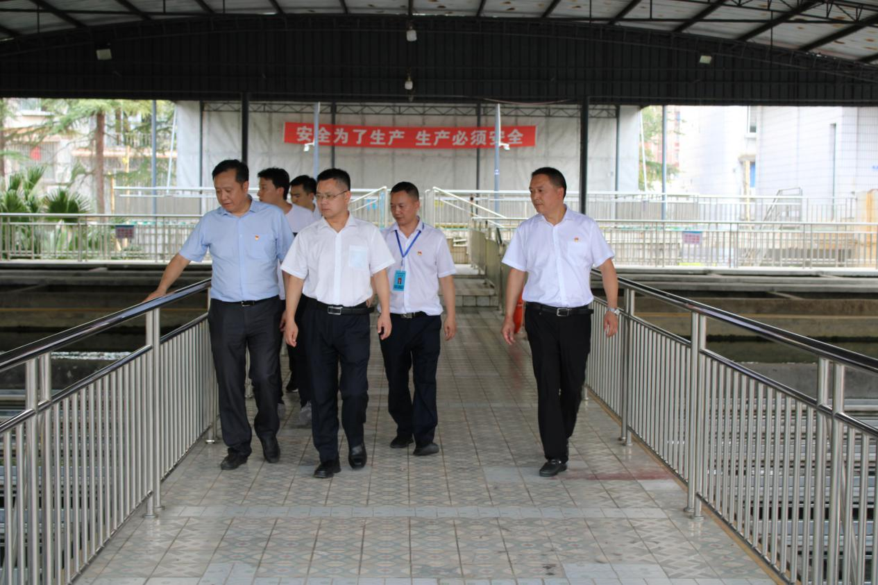 杜宜波一行首先去到射洪水司全新改造升級(jí)的客戶服務(wù)中心、生產(chǎn)廠區(qū)、環(huán)檢公司、廣興鎮(zhèn)龍灘村取水口水源地等進(jìn)行了現(xiàn)場(chǎng)調(diào)研,查看了制水工藝流程,詢問水質(zhì)檢測(cè)保障情況,隨后聽取了劉松果就疫情防控、汛期制水、水質(zhì)保障、安全檢查、安全生產(chǎn)、經(jīng)營(yíng)情況及防災(zāi)減災(zāi)工作落實(shí)情況的匯報(bào)??偣こ處煻乓瞬▽?duì)我司供水服務(wù)管理、安全生產(chǎn)和龍灘村取水口水源地環(huán)境保護(hù)工作寄予了充分肯定,他指出:安全平穩(wěn)供水事關(guān)全市經(jīng)濟(jì)社會(huì)發(fā)展大局,責(zé)任重大,川投水務(wù)射洪公司一定要進(jìn)一步強(qiáng)化安全生產(chǎn)主體責(zé)任意識(shí),加大安全隱患排查整改力度,加強(qiáng)水質(zhì)檢測(cè)、嚴(yán)把出廠水水質(zhì)關(guān),讓全市人民群眾喝上安全、放心的自來水。