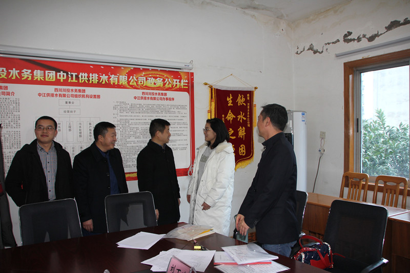 在公司會(huì)議室,陳勇副縣長(zhǎng)與川投水務(wù)集團(tuán)黨委副書(shū)記、工會(huì)主席、中江水司董事長(zhǎng)王小元進(jìn)行了親切交流,并感謝中江水司在過(guò)去一年里為中江經(jīng)濟(jì)社會(huì)發(fā)展,尤其是環(huán)保督察、污水項(xiàng)目建設(shè)以及脫貧攻堅(jiān)工作所作出的努力!同時(shí),陳勇副縣長(zhǎng)查看了管網(wǎng)水質(zhì)、水壓在線(xiàn)監(jiān)測(cè)系統(tǒng),并希望切實(shí)做好春節(jié)期間安全生產(chǎn)和供水應(yīng)急保障預(yù)案,履職盡責(zé),確保節(jié)日期間安全供水,并借此機(jī)會(huì)恭祝大家新年快樂(lè)!