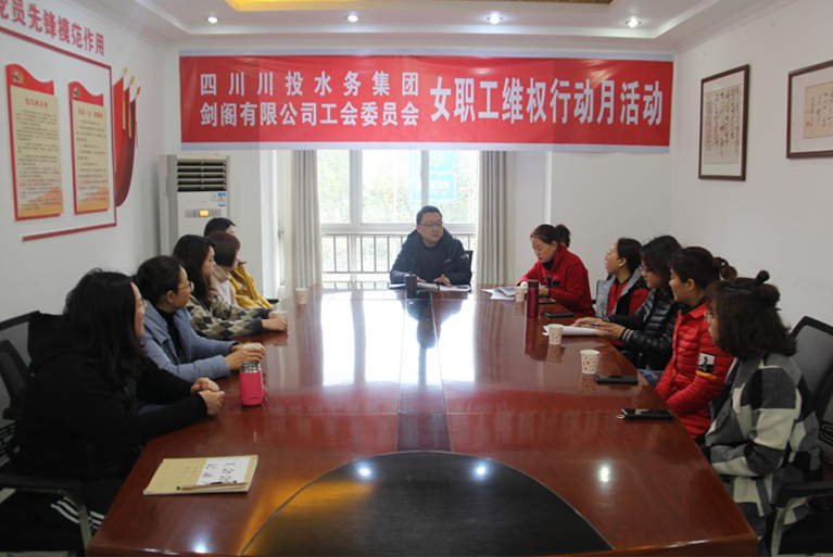 2019年3月21日,劍閣水司工會(huì)主席、副總經(jīng)理韓名泉帶領(lǐng)工會(huì)委員白橋及公司10余名女職工在下寺會(huì)議室,開展了以“貫徹落實(shí)男女平等基本國策,促進(jìn)工作場(chǎng)所性別平等”為主題的女職工維權(quán)行動(dòng)月活動(dòng),著力推動(dòng)解決女職工在勞動(dòng)就業(yè)、生育保護(hù)、職業(yè)待遇等促進(jìn)工作場(chǎng)所性別平等存在的突出問題,依法維護(hù)女職工合法權(quán)益和特殊利益。
