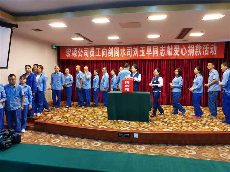 疾病無情,宏源有愛。2019年5月18日上午11:00,公司在11樓大會議室舉行了“向川投水務劍閣公司劉玉早同志捐款”活動,公司領導帶頭捐款,不當班的員工也早早到場,紛紛伸出援助之手,慷慨解囊。而當天因在值班生產不能到現(xiàn)場捐款的員工已經于17日晚上通過微信進行捐款,公司204名員工共籌集善款53161.00元。按照公司黨委書記、總經理李旭東的要求,當天下午14:00,公司工會主席倪沛林、綜合部經理劉平等一行驅車300多公里將所捐善款親手送到川投水務劍閣公司黨支部書記、總經理何天政的手中,轉達了宏源公司全體員工對劉玉早同志的關心和祝福。