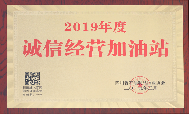 誠(chéng)信比黃金更重要。2019年3月,從四川省石油制品行業(yè)協(xié)會(huì)全省先進(jìn)表彰暨誠(chéng)信經(jīng)營(yíng)加油站授牌大會(huì)上傳來(lái)捷報(bào):宏源氣司加油站被授予“誠(chéng)信經(jīng)營(yíng)加油站”光榮稱(chēng)號(hào)。