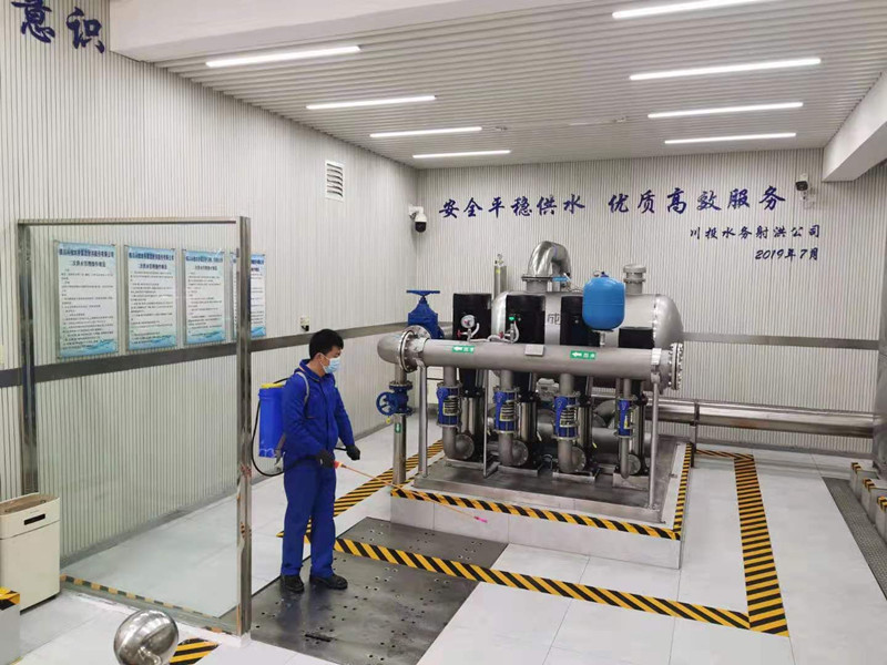 2月5日,射洪市一小區(qū)外DN160突然爆管,工程部人員立即趕往現(xiàn)場(chǎng),半天時(shí)間搶修完成;連續(xù)奮戰(zhàn)2天,成功修復(fù)山水濱江破裂管道;二供部員工為防止污染,保證供水設(shè)施設(shè)備正常供水,定時(shí)到城區(qū)內(nèi)管理的泵房對(duì)二次供水設(shè)施進(jìn)行消毒,以確保最后一公里安全用水;生產(chǎn)一線員工堅(jiān)守在崗,全力生產(chǎn)保供水;檢測(cè)中心員工在疫情肆虐期間,在做好自身防疫措施下,堅(jiān)持對(duì)城區(qū)各處管網(wǎng)末梢水的采樣檢測(cè),保證這非常時(shí)期全城區(qū)市民的用水安全。各部門(mén)員工各司其職、通力合作,積極做好公共區(qū)域消殺工作和宣傳引導(dǎo)工作,發(fā)放和張貼防疫宣傳資料,按照川投水務(wù)集團(tuán)黨委要求,公司設(shè)立防疫宣傳站,每日廣播防疫宣傳知識(shí),引導(dǎo)大家不外出、不集聚、戴口罩、講衛(wèi)生,全力做好疫情防控工作。