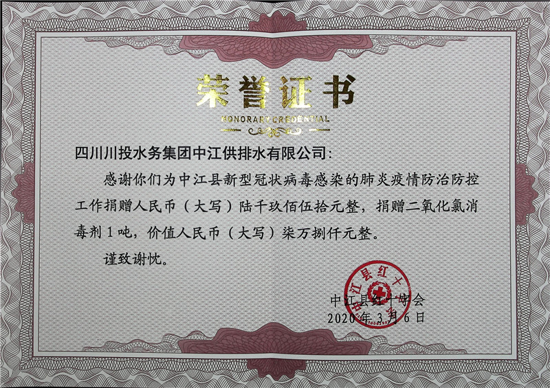 疫情期間,川投水務(wù)中江水司積極聯(lián)系購買渠道,以及克服高速公路管控等多種因素,最終在2月13日下午,由川投水務(wù)中江水司支部書記、總經(jīng)理朱禹帶領(lǐng)相關(guān)部門負(fù)責(zé)人將中江縣城市消毒急需的1噸二氧化氯消毒劑捐贈(zèng)物品親手送到中江縣預(yù)防新型冠狀病毒感染肺炎疫情聯(lián)防聯(lián)控指揮部后勤組,為抗疫防疫貢獻(xiàn)力量,為疫情防控、環(huán)境消、殺、滅提供了有力的物資保障。