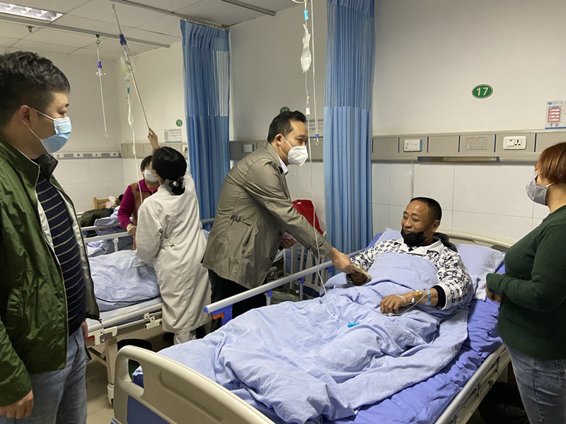 3月27日上午,大英水司黨支部書記、總經(jīng)理劉松果到大英縣人民醫(yī)院探望慰問因病住院結(jié)對幫扶貧困戶向東,代表公司送去愛心資助款,并以個(gè)人名義給予捐助。