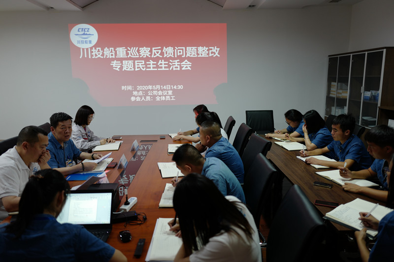 根據(jù)省國資委第二巡察組要求,按照川投水務(wù)集團(tuán)黨委《關(guān)于落實(shí)省國資委第二巡察組巡察反饋意見的整改方案》,四川川投船重環(huán)境科技有限公司于2020年5月14日召開巡察反饋問題整改專題民主生活會(huì),會(huì)議由總經(jīng)理馬銘偉主持,全體員工參加會(huì)議。
