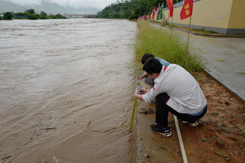 9月14日上午8時至11時,米易縣城區(qū)出現(xiàn)短時強對流及強降雨天氣,雨量達到76.8毫米,結(jié)合收到上游水文站的水位預(yù)警情況報告,公司第一時間快速反應(yīng),通知防汛(防疫)值班人員在保護好自身安全的前提下實時密切關(guān)注安寧河水位情況變化。8時51分,一枝山項目現(xiàn)場值班人員反饋安寧河河水上漲已經(jīng)超過標高1057.5m,公司迅速啟動防汛預(yù)警,安委會主任馬銘偉、防汛工作總指揮李軍冒雨趕往項目現(xiàn)場,親自指揮防汛工作并與施工單位及防汛組人員一起,通知現(xiàn)場施工人員迅速從低洼處撤離轉(zhuǎn)移到安全地點,對設(shè)備、物資等做好檢查與保護措施。9時54分,項目現(xiàn)場安寧河水位達到標高1059m時(一枝山項目沿河段擋墻標高1060m),已經(jīng)達項目防汛警戒水位,公司迅速啟動防汛應(yīng)急預(yù)案,防汛各小組人員迅速響應(yīng),觀察各工藝點情況,在河堤上巡察水位上漲情況,做到每十分鐘監(jiān)測一次水位,每半小時上報上級集團水位情況。在工地防汛現(xiàn)場,公司安委會主任馬銘偉再次強調(diào)防汛人員安全問題,再次要求時刻繃緊防汛安全弦,正確使用防汛物資,要交叉迭砌沙袋等使防水墻更加結(jié)實。同時,防汛工作總指揮李軍在現(xiàn)場指出要嚴格執(zhí)行防汛應(yīng)急方案,并做好安寧河河水水位相關(guān)數(shù)據(jù)的記錄,收集好第一手影像資料,在今后的工作中依靠大數(shù)據(jù)做好汛期防范工作。