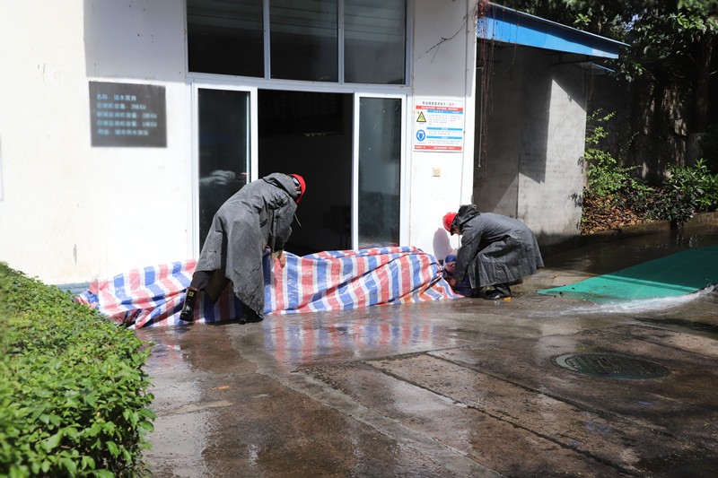 抗震救災應急演練結(jié)束后,公司隨即開展了防洪防汛防澇應急演練。模擬在天氣突然強降雨的情況下,接到險情報告后,按照演練方案立即啟動防洪、防汛、防澇應急預案。值班人員發(fā)現(xiàn)險情后,立即向部門負責人報告,參演人員迅速采取措施,用沙袋進行防護,阻擋洪水進入泵房。