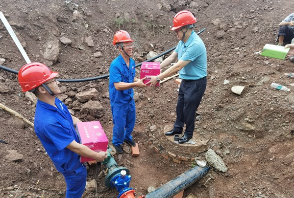 7月19日上午,王洪先代表公司為安裝維修現(xiàn)場(chǎng)和客服抄表現(xiàn)場(chǎng)正在緊張忙碌著的一線職工送去了飲料、茶葉、防暑降溫藥等慰問品。慰問中,王洪先詳細(xì)詢問了基層員工們近期的工作和生活情況,囑咐大家在夏季工作中一定要注意防暑,在保證安全的情況下有序開展工作,感謝大家在炎炎夏日,兢兢業(yè)業(yè)地奮斗在各自的崗位上。職工們紛紛表示:一定會(huì)不畏酷暑,迎難而上,堅(jiān)守各自崗位,確保夏季安全生產(chǎn)和平穩(wěn)供水。