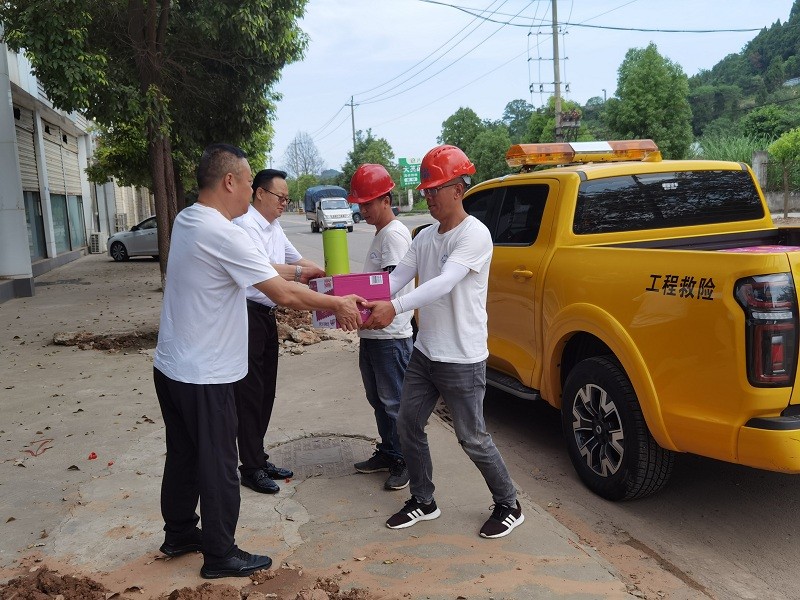 進入夏季以來,氣溫持續(xù)攀高,為了做好安全生產(chǎn)和防暑降溫工作,關(guān)愛一線職工身心健康,川投水務(wù)大英水司開展了“夏日送清涼 慰問一線職工”活動。受川投水務(wù)大英水司執(zhí)行董事、總經(jīng)理王文川委托,大英水司黨支部組織委員、副總經(jīng)理、工會主席王洪先帶領(lǐng)綜合部、安監(jiān)部相關(guān)同志參加活動。