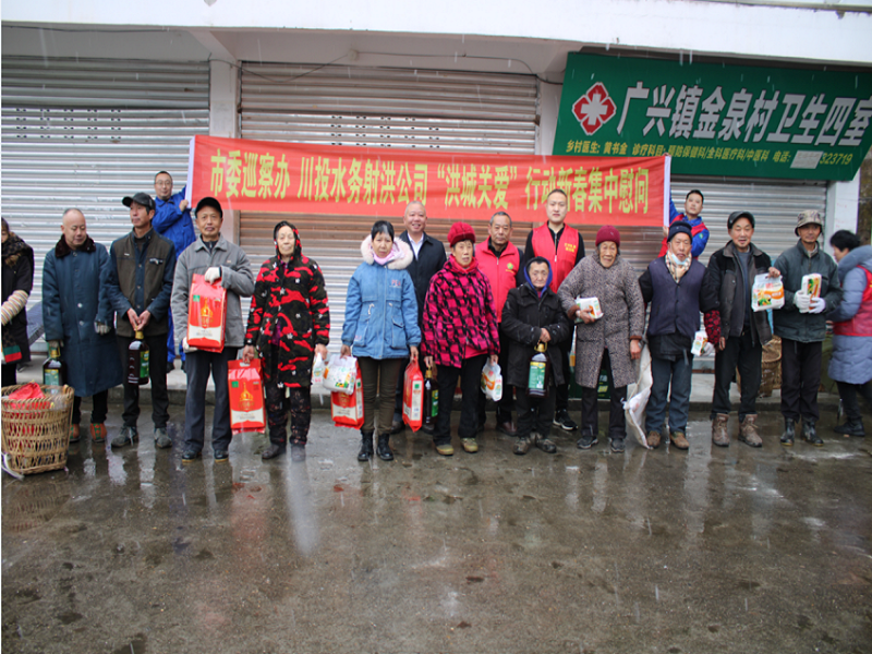 1月24日上午,川投水務射洪公司聯(lián)合射洪市委巡察辦到公司鄉(xiāng)村振興幫扶金泉村開展“洪城關愛”行動新春集中慰問。公司黨支部紀檢委員、副總經(jīng)理杜剛,公司駐村干部馬千里和市委巡察辦駐村第一書記趙治輝為幫扶戶們送去了節(jié)日的慰問和祝福。